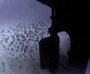 O compartimento de máquinas está completamente vazio, sem sinais das máquinas a vapor. Não se sabe se as máquinas foram removidas ou perdidas durante o naufrágio. Neste ponto, o casco está bastante quebrado, o que poderia indicar ser a área de impacto do torpedo.