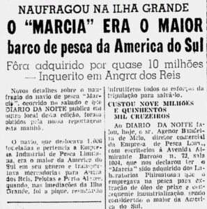 Os dados sobre o Márcia foram localizados pela equipe do SINAU (Sistema de Informações de Naufrágios) e Site Naufrágios do Brasil mais de dez anos depois do primeiro mergulho no local e embora a localização e identificação estivessem de acordo com os documentos da Marinha do Brasil, a data do naufrágio é totalmente diferente das citadas nos arquivos oficiais.