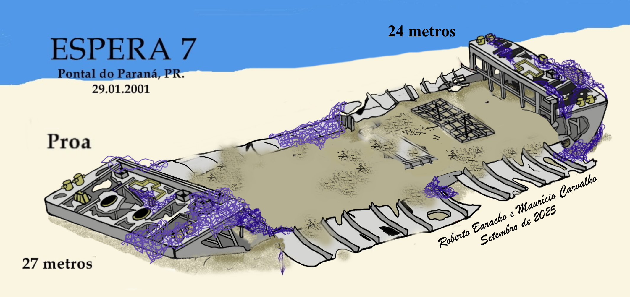 Duas grandes balsas de casco duplo, utilizadas no transporte de grãos no porto de Antonina, a Espera 7 e a Dianka, estavam desativadas a 4 anos e foram doadas ao projeto.