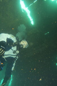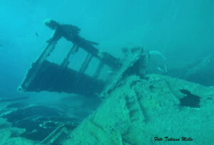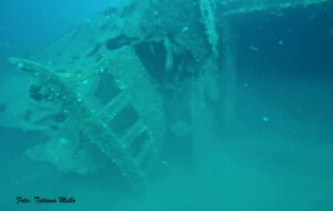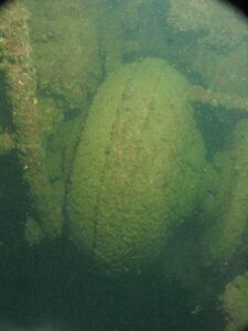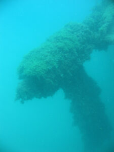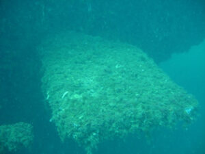 Lembramos que qualquer penetração em um navio neste estado é extremamente arriscada, já que bolhas e pancadas inadvertidas do mergulhador nas estruturas podem precipitar o desabamento. Mantenha-se seguro circulando apenas pelo lado exterior.