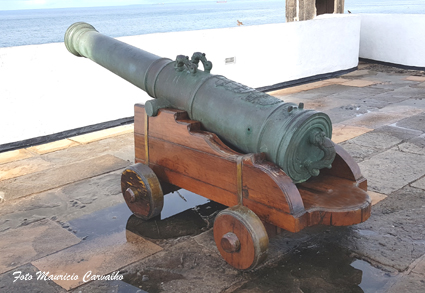 Canhões de bronze tipo colubrina do Sacramento expostos no Museu Naval e Oceanográfico do Rio de Janeiro e no Museu do Farol da Barra em Salvador