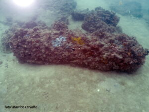 Alguns dos canhões de ferro que sobraram do Nossa Senhora do Rosário e Santo André