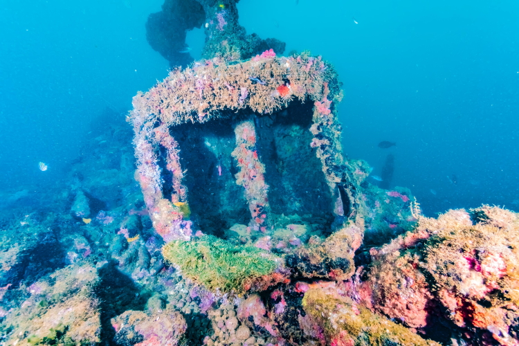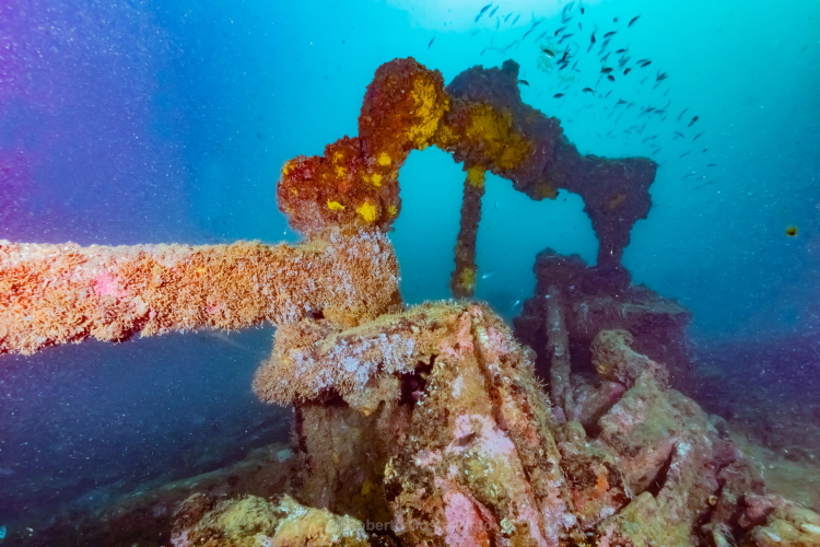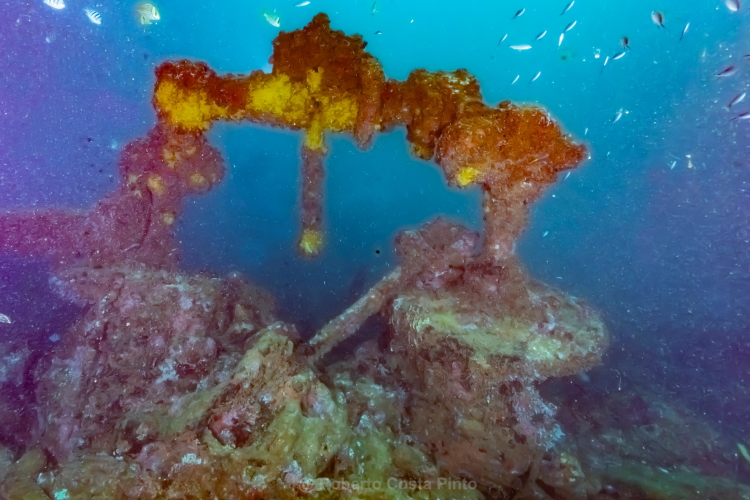 No centro da embarcação duas caldeiras totalmente destruídas, com os tubos do trocador de calor espalhados pelo fundo, estão à frente do conjunto de máquinas extremamente raras do tipo Oscilating Engine, onde ainda existem os cilindros e pistões. O eixo de boreste ainda está ligado ao conjunto e na sua ponta está o cubo da roda de pás que já desmoronou.