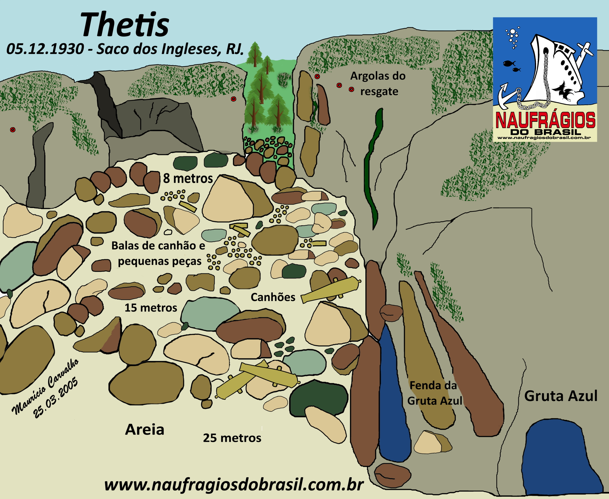 Local do naufrágio da Fragata Thetis em 1986 e em 2001