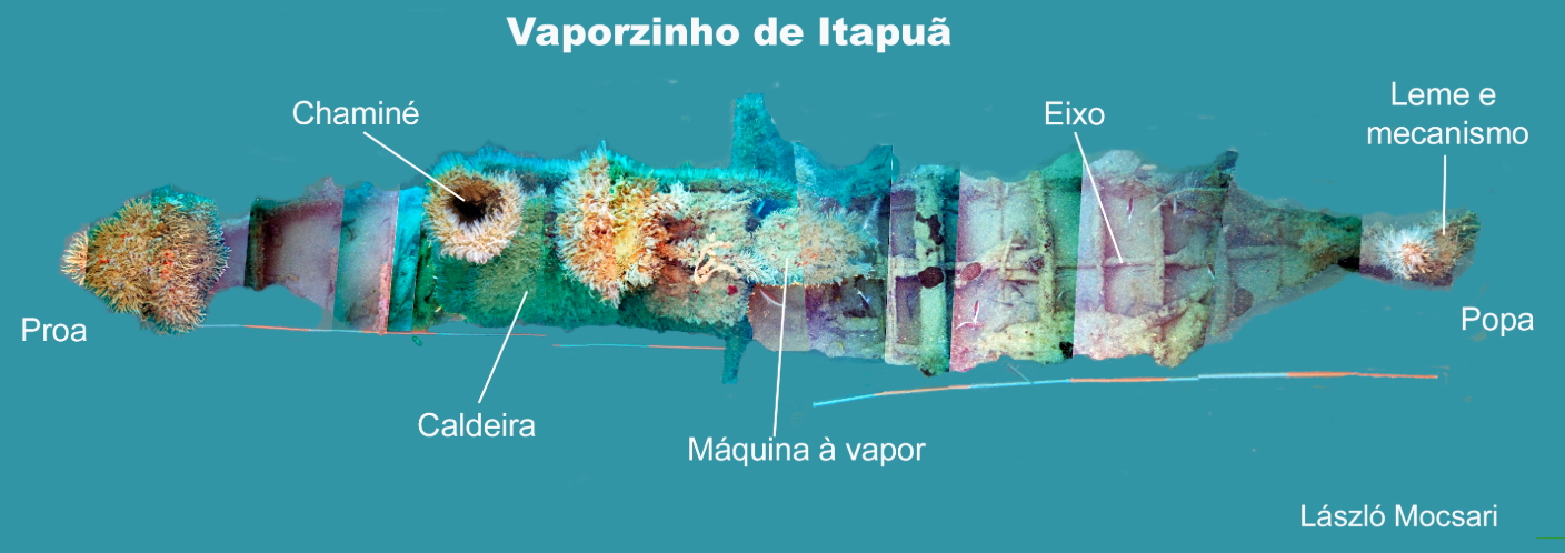 O vaporzinho de Itapuã foi encontrado por pescadores por volta da primeira metade dos anos 2000, situado a cerca de 2 milhas náuticas da famosa praia de Itapuã, imortalizada nos versos de Vinícius de Moraes e Toquinho (“Tarde em Itapuã”). Trata-se de uma embarcação pequena, com aproximadamente 15 metros de comprimento, movida a vapor, que hoje repousa sobre um fundo de rodolitos a exatamente 40 metros de profundidade.