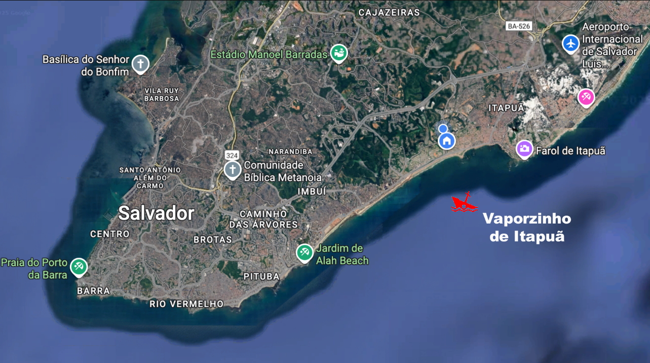 Posição: a 2 NM (milhas náuticas) da praia de Itapuã