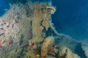 A embarcação afundou em posição de navegação, com a proa apontando para a terra, o que sugere que, durante o naufrágio, a tripulação tentou levá-la à praia.