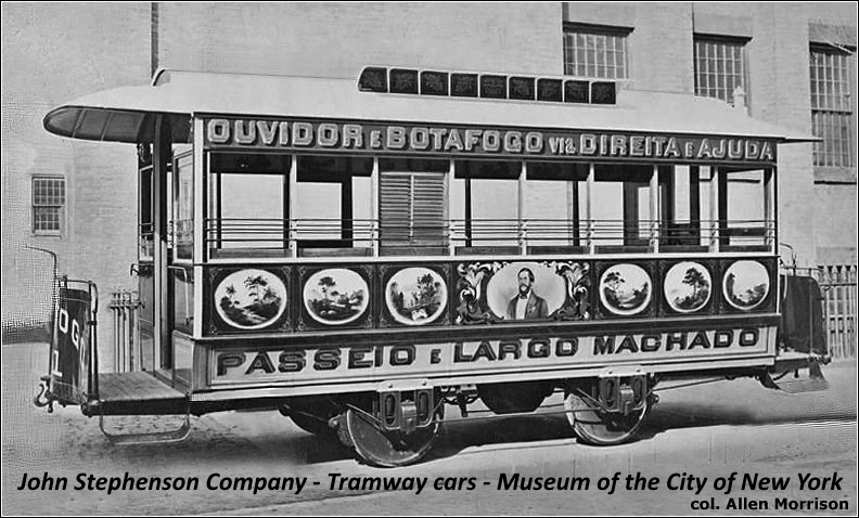 Companhia Ferro-Carril Jardim botânico e um dos bondes encomendados na empresa John Sttephenson de Nova York