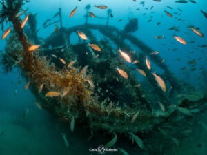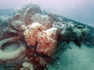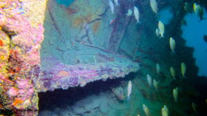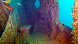 Junto à popa, parte mais rasa dos destroços atingindo 22 metros, existem dois pares turcos e o convés também já desapareceu, assim como casario, que deveria ser apenas na popa.