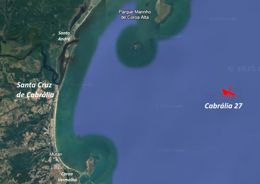 Posição do naufrágio em frente a Santa Cruz de Cabrália